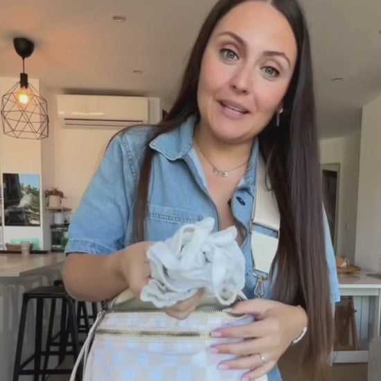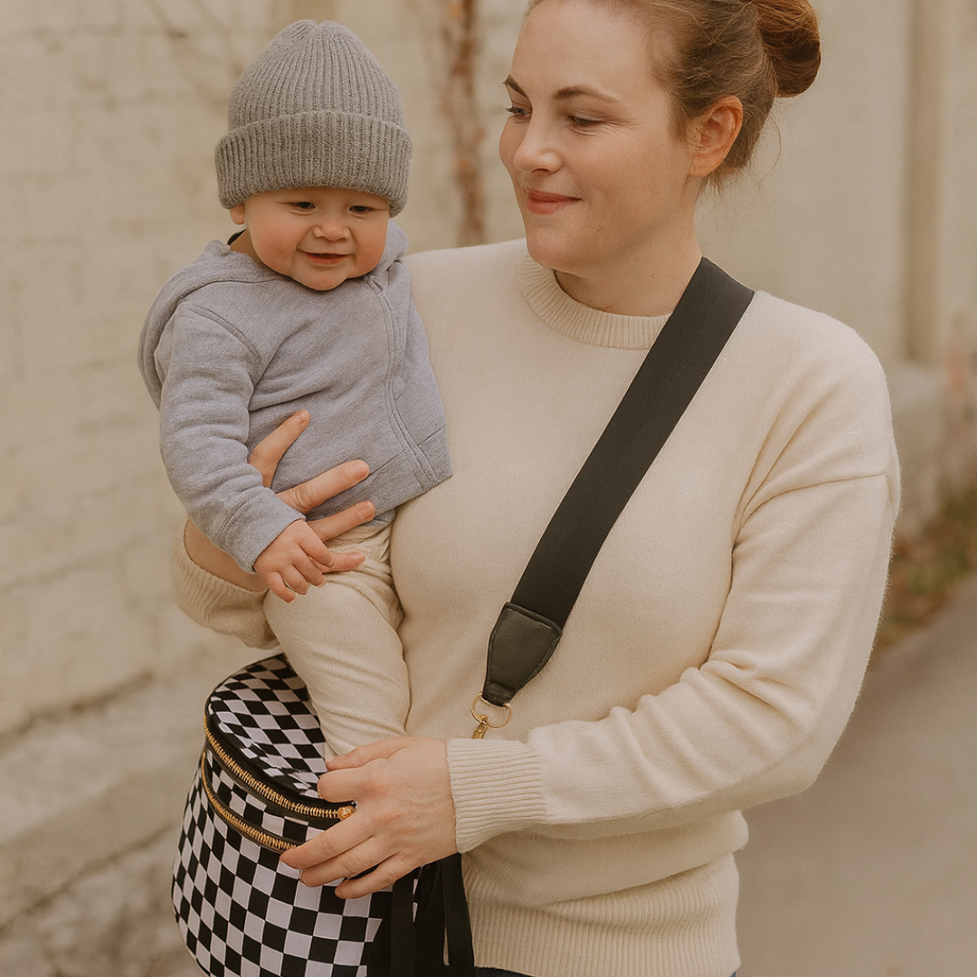 Chaque détail a été pensé pour simplifier votre quotidien — des poches bien placées, une bandoulière confortable et un design qui ne ressemble pas à un sac à langer.